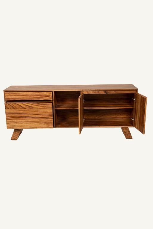 Bufet hecho con MDF y chapa de nogal natural. Para muebles empolvados limpia los muebles con un trapo seco. Para muebles medianamente sucios y manchados, reanudaremos con un trapo humedecido, esto servirá para remover las pequeñas partículas que no fueron retiradas en la etapa de limpieza al seco. No utilizar productos de limpieza con químicos, ya que pueden dañar la chapa natural que contienen estos productos.