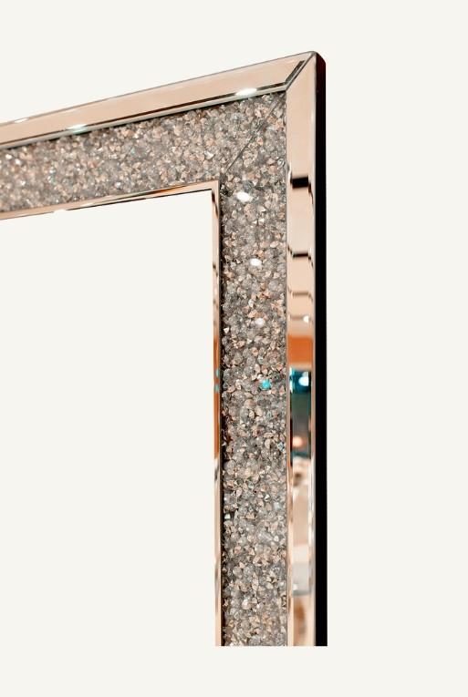 Espejo de pie con marco decorado con cristales, dando un toque moderno y sofisticado.