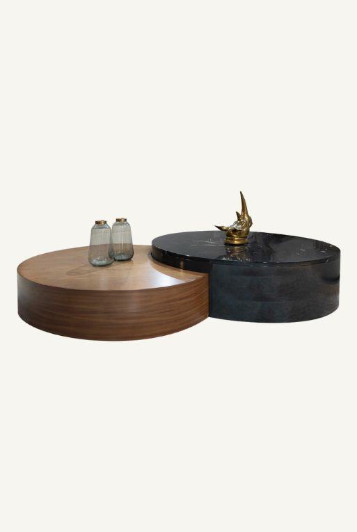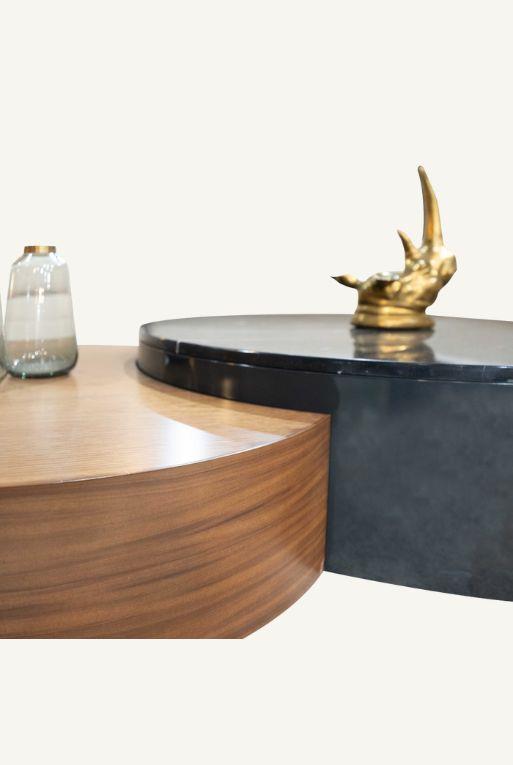JUEGO DE MESAS DE CENTRO CASANOVAL MARMOL Y MADREA NOGAL