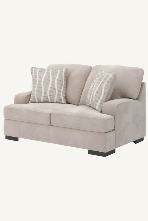 El love Sara Rose combina estilo y durabilidad con su estructura reforzada, cojines reversibles de alta resistencia y base tipo plataforma que ofrece soporte uniforme. Tapizado en tela 100% poliéster versátil y acompañado de cojines decorativos, mantiene un acabado impecable con el tiempo, mientras sus patas en acabado madera le dan un toque moderno y elegante.