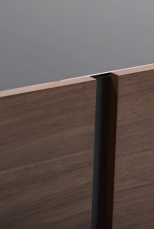 La mesa central Hanna está hecha con madera de nogal y cuenta con una cubierta de cristal templado ahumado.