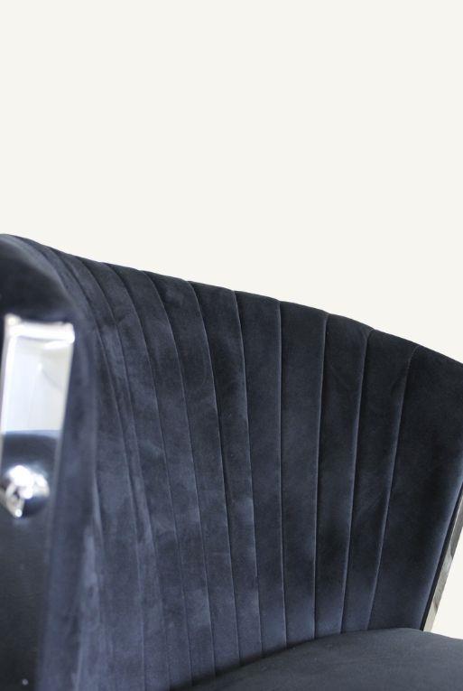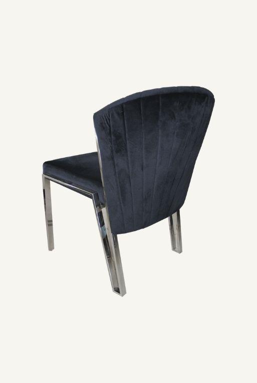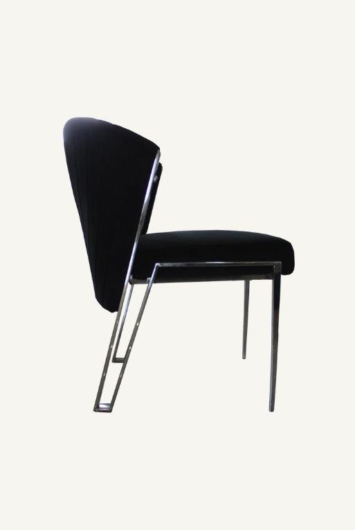 Silla de comedor de importación, hecha con acero inoxidable, asiento de tela tipo velvet color negro.