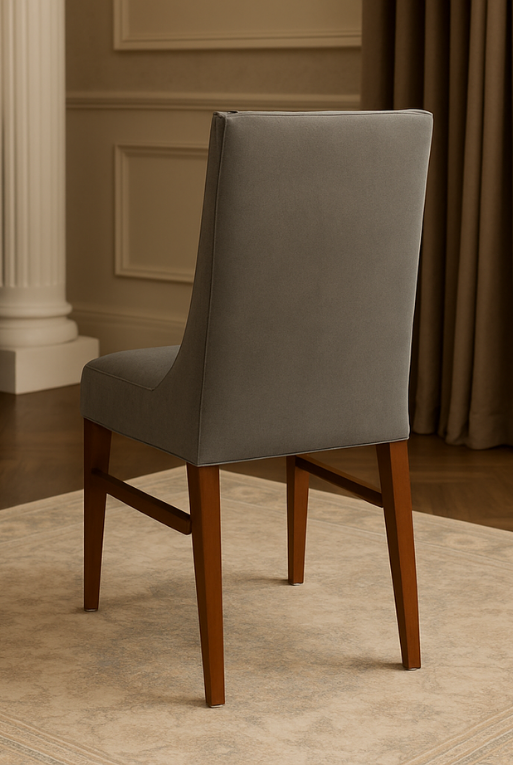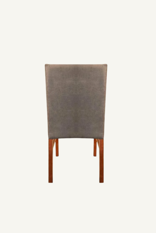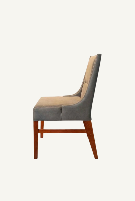 Silla de comedor hecha con madera y tela color gris de gran comodidad.