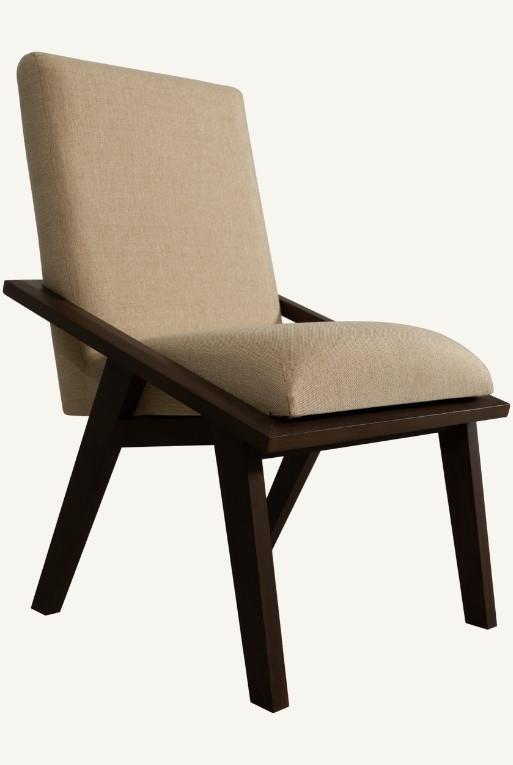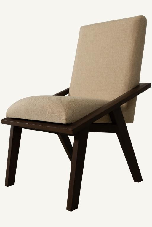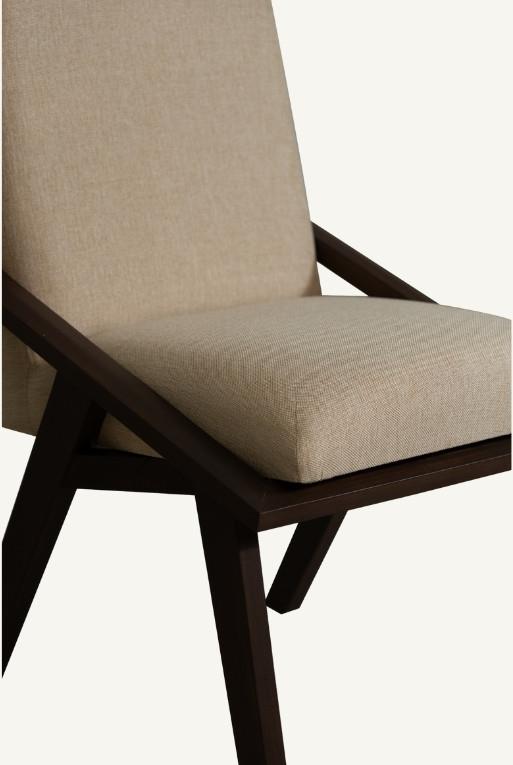 Silla de comedor hecha con madera nogal, tela circonia color beige.