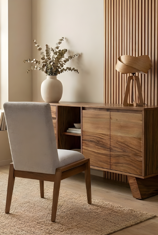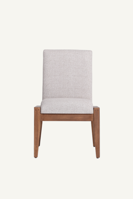 Silla de comedor hecha con madera nogal, tela circonia color gris oscuro