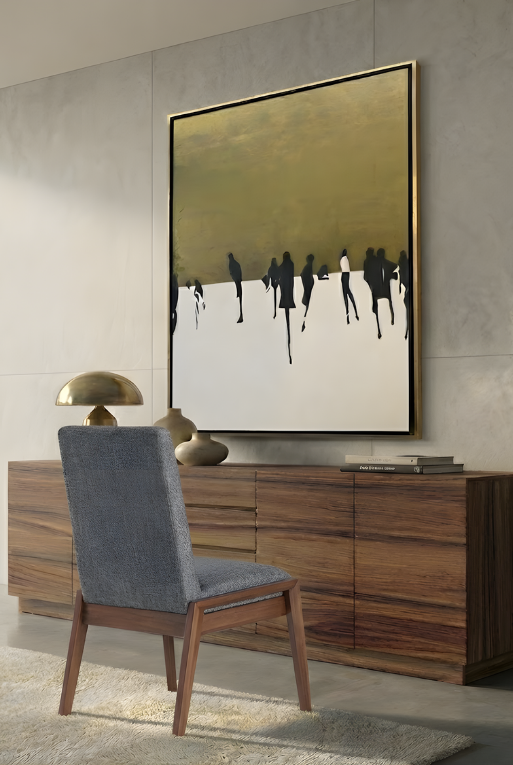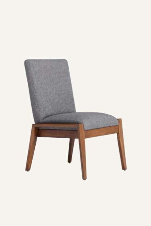Silla de comedor hecha con madera nogal, tela circonia color gris oscuro
