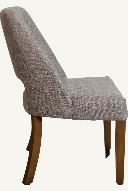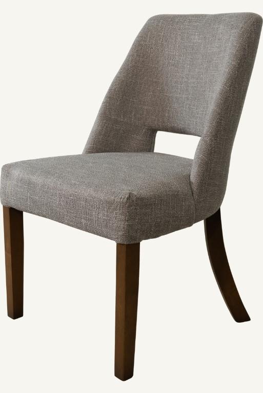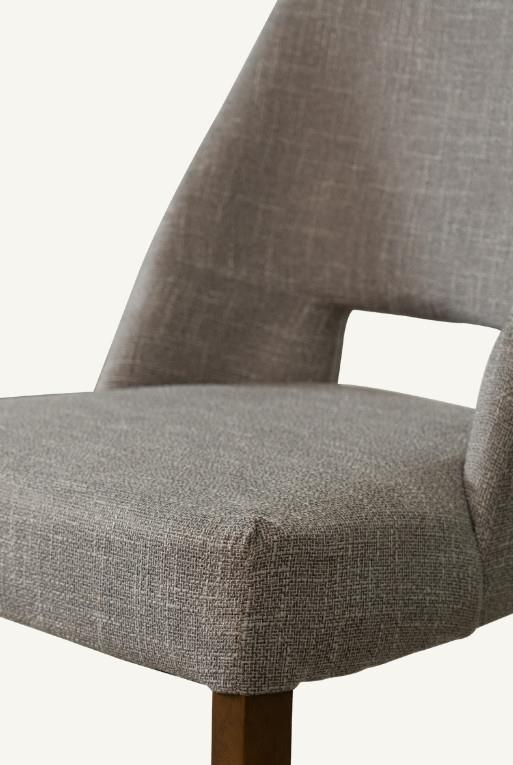 Silla de comedor hecha con madera nogal, tela circonia color gris.